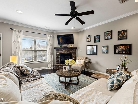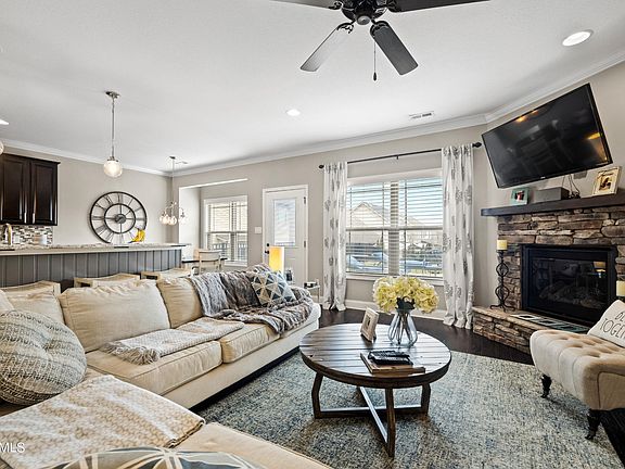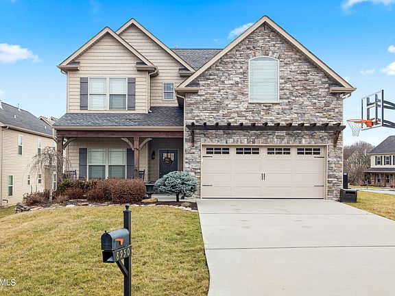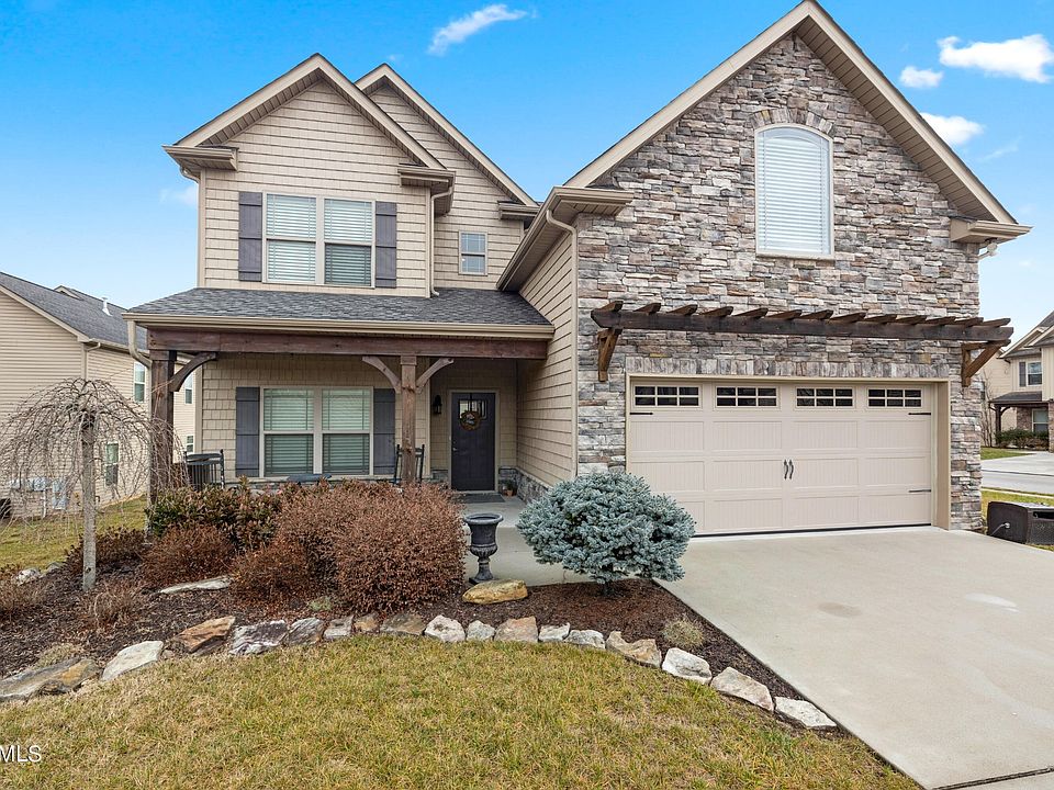 Come see this beautiful craftsmen style home! The exterior front is stone and shake with timber posts on the covered porch. The large great room with a corner gas log fireplace opens to the gorgeous kitchen with large island, granite countertops, and eat-in breakfast area. Formal dining room off of the kitchen. Hardwood flooring throughout main living areas. One bedroom and bath on main level. 2nd level primary suite has jacuzzi tub and separate shower. 2 additional bedrooms, large bonus room, and laundry room/storage on this level. French door leading to stunning patio with completely fenced in backyard. This lovely neighborhood has two pools for use! Schedule your showing today!