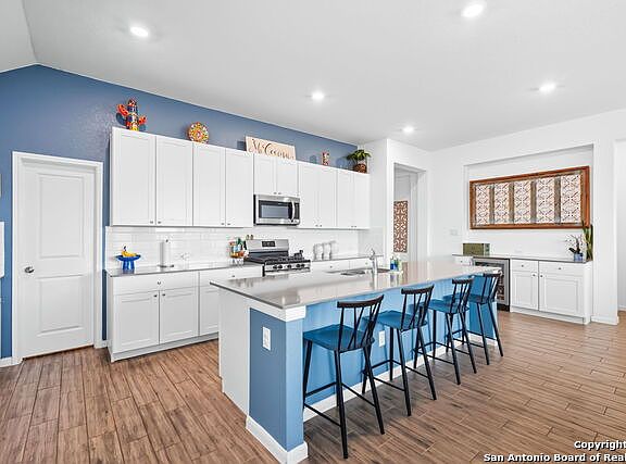 This home is beautiful and has plenty of room to entertain. The modern kitchen has an added built in bar and mini fridge. Ceiling fans are installed in the living room, four bedrooms and the bonus room. Cabinet and countertop has been added in the laundry room for a folding station. Covered backyard patio with your own private backyard fence line. Irrigation system in the front and backyard. The washer, dryer, refrigerator and security system with exterior cameras, door sensors and system control pad will stay, but tenant will need to set up new security service if they choose to use. The neighborhood HOA has a clubhouse with a gym, pool and playground. These amenities are within walking distance of the home.