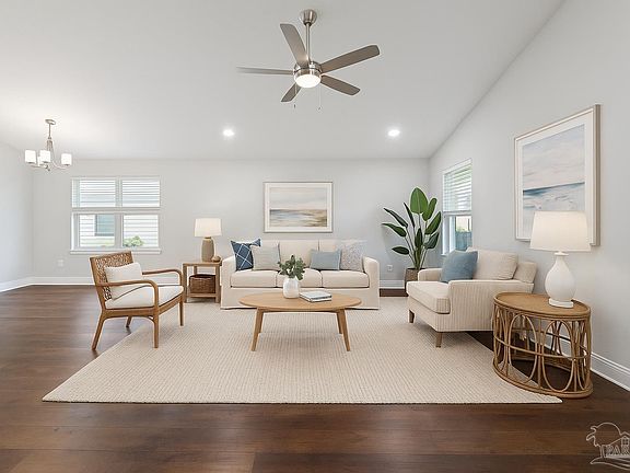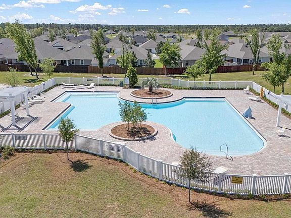 Preferred Lender interest rate buy down is available!!! Welcome to Yellow River Ranch! Built in 2020 by Flynn Built, this home was one of the first in this serene community. All brick and thoughtfully designed with 3-bedrooms, and 2-bathrooms offering the perfect blend of style, comfort, and functionality. Step inside to an open-concept living area with soaring vaulted ceilings and gorgeous LVP flooring that flows seamlessly throughout the main areas. The spacious family room is perfect for gatherings and entertaining, while the kitchen includes a designated dining area, generous cooking space, large island and bar, stainless steel appliances, and a pantry providing ample storage. Sliding glass doors lead you to the newly screened-in patio, where you can enjoy Florida’s beautiful weather year-round. The patio is wired for its own speaker system and TV hookup, perfect for the sports enthusiasts or music-lovers. The primary suite features an oversized walk-in closet, and a spa-like bathroom complete with a double vanity, soaking tub, and stunning tiled shower with a second rain shower head. Two additional bedrooms offer abundant closet space and share a well-appointed bathroom. The fully fenced in backyard provides plenty of privacy and space for relaxation or entertaining and includes a great view of the neighborhood pool. Additional features include a two-car garage, a sprinkler system, tankless gas water heater, and smart-home technology to enhance your everyday living. Enjoy access to Yellow River Ranch’s large community pool, a playground for the kids, and scenic walking trails surrounded by natural beauty.