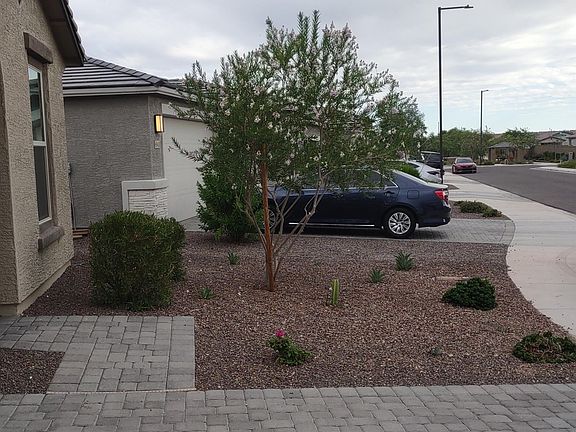 1/4-acre (.25 ac) homesite. Explore this beautiful Larimar home. Boasting driveway pavers with driveway extension for 3rd Car. and front yard landscaping. Included features: a covered entry; 3rd on suite bath in 4th bedroom, 8 ft tall doors throughout, an elegant dining room; a well-appointed kitchen offering 42'' cabinets, granite countertops, a walk-in pantry and a island; a spacious great room; a lavish primary suite showcasing a generous walk-in closet and a private bath with marble countertops; a convenient laundry; a covered patio and a 2-car garage. This home also offers stone tile flooring, white faux wood blinds on all windows, and ceiling fans in all bedrooms and living room. Includes washer and dryer and Kitchen Refrigerator, ceiling storage racks in garage, extra lg bk ya