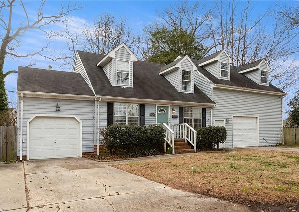 One-of-a-kind home in Colonial Heights. Updated kitchen with granite countertops and stainless steel appliances. Newer laminate flooring in dining area and family room. First floor primary bedroom ensuite features walk-in closet and remodeled bath. Upstairs are two spacious bedrooms upstairs with large closets as well as a remodeled full bath. Roof replaced 2017. Almost 1000 sqft of garage space! In addition to 1-car garage, separate oversized 1 car garage offers room for a workshop or boat/camper storage. 600 sqft room over garage with mini-split system has a separate entrance and could be converted into an in-law suite or rental apartment. Lg deck and fully fenced in yard. New privacy fencing. Conveniently located one mile from the bay, close to Norfolk and Little Creek bases, highway, shopping, and dining 2024-06-11
