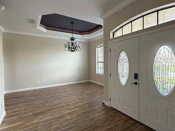 - Crown Molding, Eat-in Kitchen, Individual Climate Control, Kitchen/Family Room Combo, Living Room/Dining Room Combo, Primary Bedroom Main Floor, Solid Wood Cabinets, Stone Counters, Thermostat, Tray Ceiling(s), Vaulted Ceiling(s), Walk-In Closet(s)