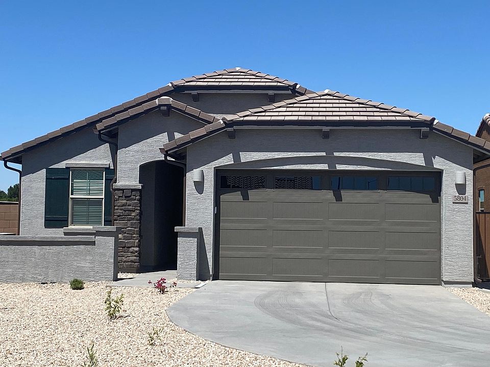 In a gated community of new single-story homes in StoneHaven in Glendale, AZ. This community features plenty of on-site amenities such as a community pool, playground and basketball court. In addition, these homes are near State Farm Stadium, home to the Arizona Cardinals, Gila River Arena, home to the Arizona Coyotes and the Westgate Entertainment District where there is plenty of shopping and dining. We just upgraded all the bedrooms from carpet to wood floors