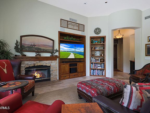 Located in prestigious Market Street Villa community of DC Ranch. Camelot's most Popular open floor plan, offering a split bedroom layout. 3 bedrooms, 2 baths, 2 car garage and a large private patio. Relax in the heated sparkling Spool in the back yard w/a waterfall feature providing striking ambiance, plus a gas firepit. The Chef's kitchen, with beautiful cabinets, granite counters, newly purchased SS appliances, Bosch Frig, Asko Dishwasher & GE Profile oven & microwave. Black gas cooktop. An inviting gas fireplace is a focal point in the great rooms open living concept. This spacious floor plan is perfect for a winter retreat or a primary home. DC Ranch Village Center provides Stellar Amenities, Community-heated pools, fitness/workout facilities, basketball, tennis, pickleball, plus 30+miles of landscaped hiking trails. GREAT LOCATION near World-Class Shopping, Restaurants, Entertainment, Golf Courses. Close by is West World, the Ice Den, with proximity to Scottsdale's Major National Events like the TPC Waste Management "Greatest Show on Grass," the Barrett-Jackson Collector Car Auction, and the Arabian Horse Show--Easy access to Airports! The best location is the valley, and close to the freeway for easy access to the airport.