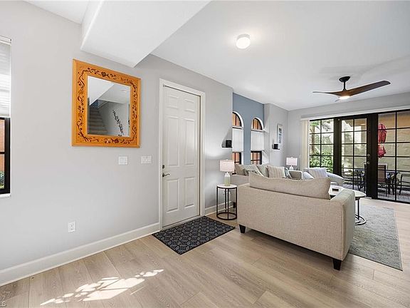 Experience the comfort of a meticulously renovated single-family Capistrano Casita, located within the well-appointed community of Ole at Lely Resort. The Capistrano Casita is a popular single-family model with one of the largest floor plans. The open den/loft, used as a flexible space for exercise equipment, office, and extra sleeping area, can be easily converted into an enclosed 11’x15’ third bedroom by adding a wall and door. It features a walk-in closet and access to the second bathroom. A renovation was completed in November 2023, featuring stainless steel kitchen appliances with an induction range, quartz countertops in the kitchen and bathrooms, custom-painted cabinets, and designer tile in both full bathrooms. The primary bathroom includes matching tub and shower tile. The center island kitchen is a chef’s delight and the formerly tiered counter was lowered to matching height. Separate but adjacent living and dining rooms provide the openness most appreciate. The HVAC system was upgraded to a higher SEER energy-efficient model in 2022, and the water heater received an energy-efficient upgrade in 2023. The interior features soft designer colors and custom Hunter Douglas shades that open from both the top and bottom. Amenities! The Olé community’s 20,000-square-foot Village Center features a resort pool, kiddie pool, spa, English pub, Bistro, fitness center, movie theater, and courts for tennis, pickleball, bocce, volleyball, and basketball. These amenities and services are provided as part of your condominium fees. Olé is a featured neighborhood in the acclaimed Lely Resort community that features 3 golf courses, 2 of which are open to the public. The location offers convenient access to shopping and dining and is situated just a short drive from both downtown Naples and Marco Island.