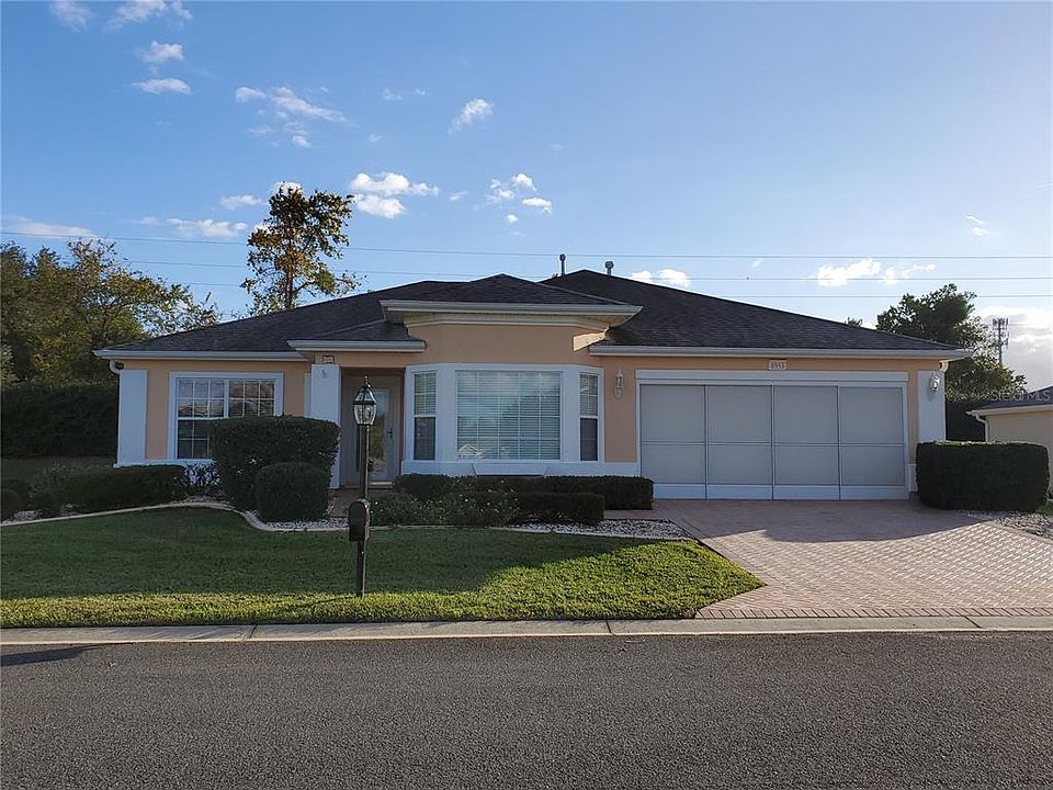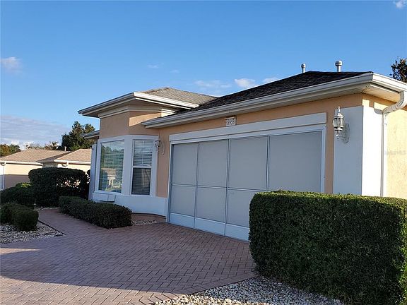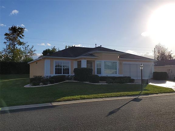 The perfect one-size fits all !!! This home is located in the beautiful neighborhood of Del Webb Spruce Creek Golf & Country Club in Summerfield. This property is the very popular Destin model, featuring three (3) bedrooms OR two (2) bedrooms and a den (3rd bedroom has closet, not door to hall), offering just the right amount of living space for todays lifestyle. Light kitchen cabinets with granite countertops and open breakfast bar to the Great Room. There is tile in the foyer, kitchen, laundry and bathrooms; hardwood in the 3rd bedroom/den and Great Room. Freshly cleaned carpets in the master bedroom and 2nd bedroom. The large, enclosed Florida room/Lanai has ceramic tile. The large, country-style kitchen located in the front of the house, is a separate room, yet offers a wide-open view to the 16x20 great room. Vaulted ceilings in this area add to the spacious and airy ambience. Sliding doors open to an enclosed lanai with rear privacy fencing. The master bedroom includes en suite bathroom with a large walk-in closet. Second bedroom and private bath are on the opposite side of the house, giving guests and owner privacy. The 3rd bedroom/den is conveniently located directly across the foyer from the kitchen. Driveway, front walk and porch are pavers and the garage has sliding screens. AN EXTRAORDINARY HOME FOR THE MONEY! CALL FOR YOUR OWN PRIVATE SHOWING!! New Roof in 2014 and HVAC in 2015. Washer/Dryer and hot water heater are fairly new. This community features 36 holes of golf, on-site restaurant and pro shop, Lake Vista, state of the art fitness center, heated indoor and outdoor pools, softball field, conservation walking trail, 24-hour SECURITY and GUARD HOUSE, and many other recreational activities. Home comes with a 1 year Home Warranty.
