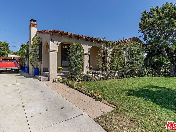 Experience true architectural romance in this beautifully preserved 1940 Spanish-style single family home in Reynier Village, the Beverlywood-adjacent enclave prized for its central West Los Angeles address. Step inside to an inviting living room awash in natural light, highlighted by classic dark wood beamed ceilings, original wood floors, and a handsome wood-burning fireplace that promises both warmth and charm. The signature archway opens to an expansive eat-in island kitchen featuring custom wood cabinetry, rich soapstone countertops, a porcelain farmhouse sink, and sleek stainless steel appliances perfect for the home chef and entertainer alike. Your culinary creations are complemented by a sunny rear deck shaded for year-round alfresco dining and relaxation over-looking a lush, private backyard and vegetable garden, delivering an effortless indoor-outdoor lifestyle. Discover a sophisticated hall bath showcasing double sinks, natural stone counters, and seamless glass shower wrapped in travertine tile flooring for a luxurious touch. Both spacious bedrooms provide restful retreats with efficient central air and heating for comfort in any season. The detached garage provides endless possibilities; imagine your dream ADU, dedicated home office, dynamic yoga and/or pilates studio, or creative workspace. The prime location gives immediate access to downtown Culver City, Beverly Hills, and Century City, plus the Expo line and 10 freeway options for quick beach excursions or downtown adventures, whether it's concerts, sports, or theatre. Timeless character, thoughtful updates, and an unbeatable location make this Spanish gem the kind of opportunity buyers dream about and one that's destined to be the heart of unforgettable Westside living.