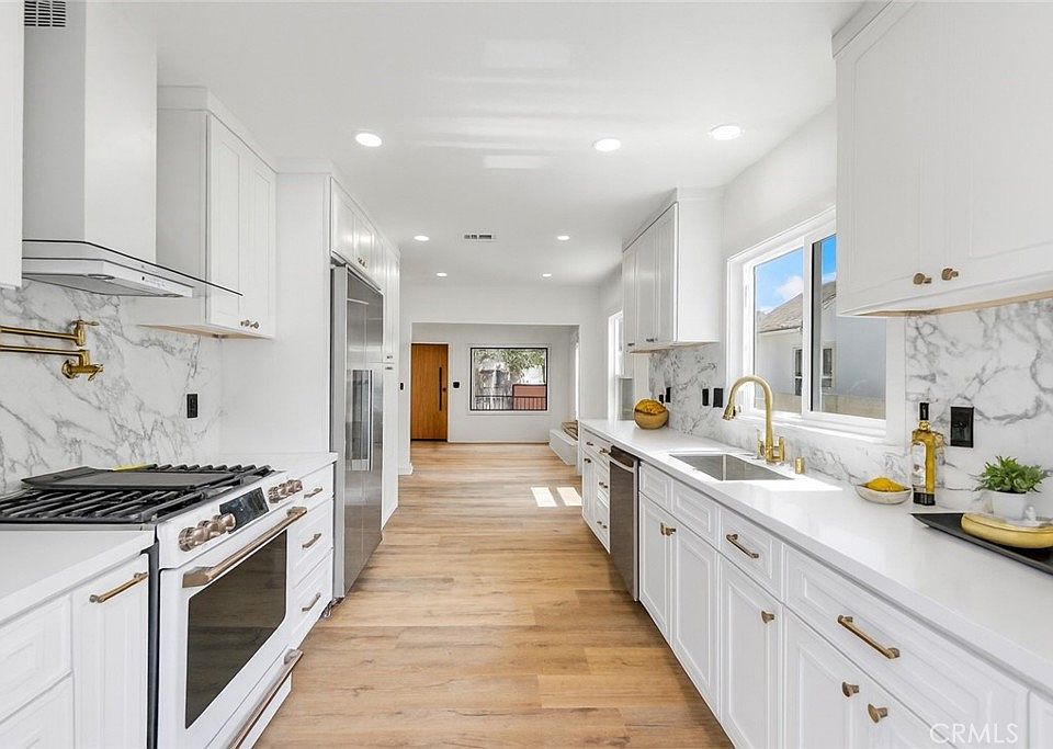 Within walking distance of Alexander Hamilton High School and the Norman J. Pattiz Concert Hall, the home features 3 bedrooms, 2 bathrooms, and an open-concept living and dining area—both inviting and functional. The renovated kitchen and bathrooms showcase stylish finishes and practical design, complete with a Viking refrigerator and other premium appliances for the discerning cook. Major upgrades include a new roof, new windows, a new water heater, and an automatic driveway gate. Additional features include a private 2-car garage and a newly landscaped private yard, perfect for relaxing or entertaining.