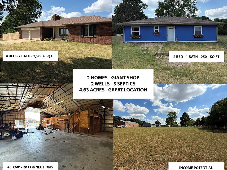 Looking for a home that will pay for itself? In fact, this property has TWO wonderful homes located on it!! This is a rare multi-family living property or it has potential to be used as rental income. This property could possibly make your mortgage payment. Sitting on 4.63 acres the main house has 2500+ sq. ft. with four bedrooms (one non-conforming) and two baths. It has two wood burning fireplaces, private fence with entry into the two-car garage that has a kennel inside that could easily be removed. Detached garage was recently renovated into a guest house that has 2 bedrooms and 1 bath, which could be used as a nightly, monthly or yearly rental or simply for a family member. The guest house also includes a nice sized area with a privacy fence for your pets. A smaller barn has four separate spaces including two corrals. Concrete floors throughout. PLUS, we don't want to forget to mention the huge 40' x 60' shop which could be rented out as a business or used as a RV storage. It has been rented out previously for $1500/month. The shop has its own electric meter with separate billing, with two large bay doors perfect for RV's or semi-trucks. Shop includes interior office/small bathroom. This property has two wells and two septic systems with the seller to install a brand-new 3rd septic upon closing just for the guest house! This is a must see if you are in the market for lots of space and possible income!! Enough space to build another home or a few cabins on the north side of the property. Limitless possibilities!! This property would make a great investment!