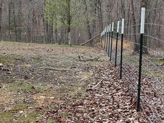 Ten Acres with septic and well!! Has had an RV parked with electric. One acre is fenced, two storage buildings. Wooded 9 acres. Would be a nice building site or keep it as a private camping getaway! Close to marina and exit 133 off I-40 The tree's with white lattice are fruit trees and nut tree's. 4 peach tree's,2 apple tree's,2 pears,3 pecan,3 hazelnut, and 1 almond tree plus 4 grape vines.