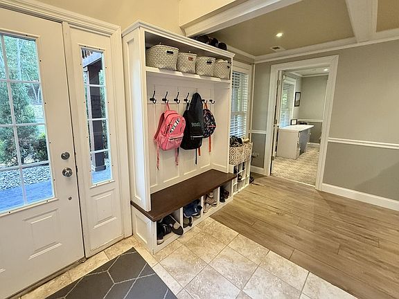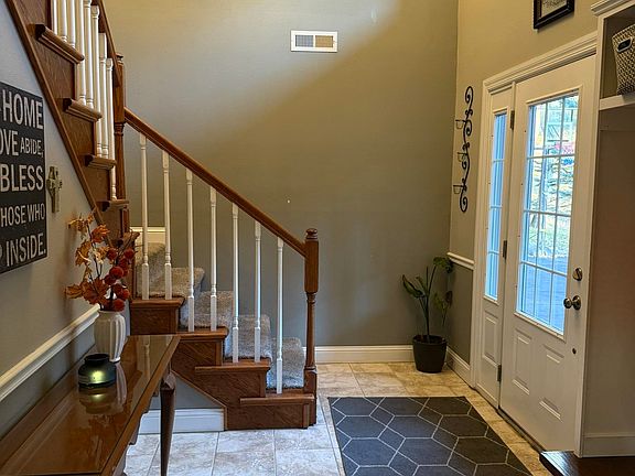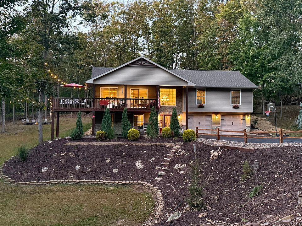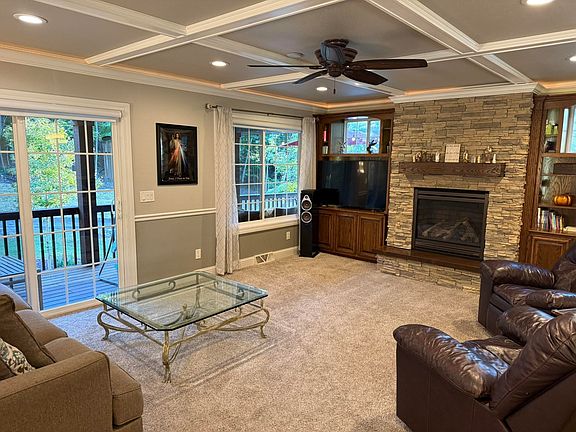 Beautifully maintained raised ranch featuring 4 bedrooms, 3 baths, and a 2-car garage — perfectly blending comfort, style, and functionality! The spacious entryway includes a convenient drop zone for coats and shoes and leads up a stunning staircase to an open-concept main level accented by trey lighting and coffered ceilings. The large living room centers around a cozy fireplace, while the gorgeous kitchen offers an island and plenty of space for entertaining. The master suite features its own private bath and a generous closet. The lower level provides a warm and inviting family room with a coffered ceiling and fireplace—perfect for movie nights, entertaining guests, or simply relaxing. Step outside to a large deck overlooking a peaceful setting, complete with a fantastic fire pit—ideal for enjoying quiet evenings outdoors.