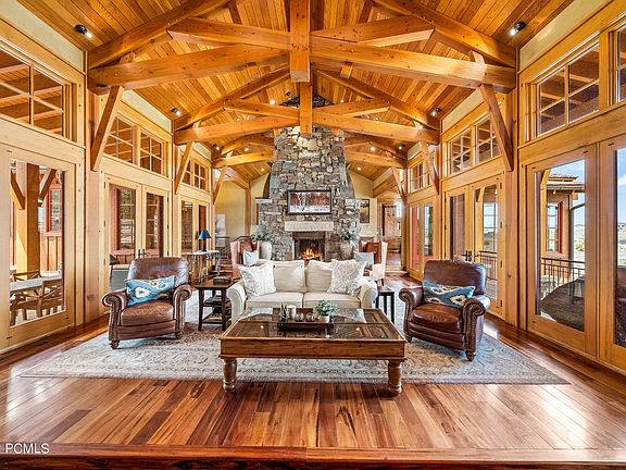 If it's privacy that you are looking for, then this Mountain Contemporary home is the one for you. This much coveted Tuhaye lot enjoys breathtaking Easterly views of the Uinta Mountain Range, a 7 acre side yard preserve and a heavily wooded, wind protected, backyard. The 4 oversized bedrooms feature en suite bathrooms, customized tile and marble surfaces and generous closets with stackable washer and dryer in the Master closet. There are 2 rooms that can be converted into bedrooms and 2 powder baths. Entertain your guests in the well-equipped chef's kitchen featuring double wolf ovens and multiple dishwashers, disposals and fridge-freezers! Brazilian cherry flooring, clear cedar ceilings, Douglas Fir beams, and stacked Wyoming stone fireplaces accentuate the cozy feel to this expansive home, and you'll love the extras, including 4 fireplaces, a decorative wine cellar in the oversized dining area, lower level living room, large pantry, mudroom and a three car garage and more storage than you'll know what to do with. This home will bring memories to last a lifetime