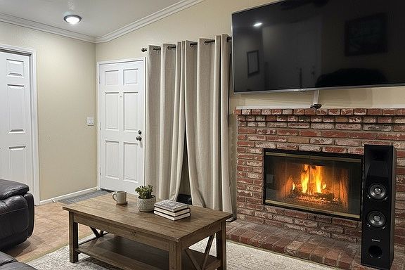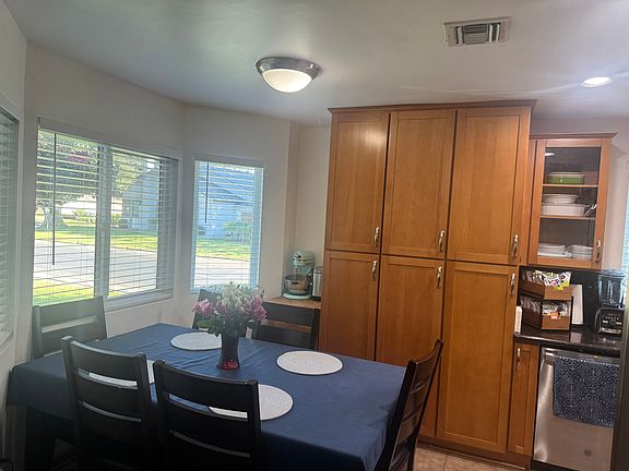 Step into this beautifully upgraded single-story condo nestled inside the desirable gated community of Barclay Square. Offering 3 bedrooms and 2 full bathrooms, this home combines comfort, style, and convenience in one of Riverside's most sought-after neighborhoods. Inside, you'll find a spacious open floor plan designed for both relaxation and entertaining. The large living room features a cozy fireplace, perfect for gathering with family and friends. The remodeled kitchen is a standout with abundant cabinetry, and a dedicated dining area. The primary suite is generously sized and includes a private bath complete with a jet tub and water softener. Additional upgrades throughout the home include scraped ceilings, double-pane windows, and convenient in-unit washer and dryer. Enjoy outdoor living on the private rear patio, with included patio table and chairs. The home also features direct access to a two-car garage with an automatic opener, plus additional driveway parking. Barclay Square is a secure, well-maintained gated community offering amenities such as a sparkling pool and spa, community RV parking, and beautifully landscaped grounds. Pest control, gardening and water is all included in the rent. The location is unbeatable close to schools, shopping, parks, and easy freeway access, making daily life a breeze. This is one of the rarely available upgraded condos in Barclay Square truly move-in ready with all the modern touches you've been looking for. Included 2 car garage with automatic opener, fridge, washer, dryer, exterior pest control and gardening and water. Located across from the community park and guest parking area.