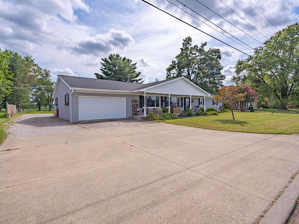 This expansive brick ranch is far larger than it appears and truly has it all—featuring 4 bedrooms, 3.5 baths, and a sprawling finished basement loaded with storage. A welcoming covered front porch opens into a generous foyer, setting the tone for the home's thoughtful layout. Just off the entry, a flexible space serves perfectly as a home office or formal living room. The heart of the home features gleaming hardwood floors and flows effortlessly into a light-filled living area with access to a new back patio. The kitchen features custom cabinetry, quartz countertops, stainless steel appliances, and a breakfast bar. The primary suite offers new LVP flooring, a large walk-in closet and a stylish en suite bathroom with an updated tiled shower. Two additional bedrooms with ample closet space share a full hall bath, while a fourth bedroom and a convenient half bath complete the main level. Downstairs, the finished basement is designed for entertaining with a large great room—perfect for a workout space, media area, pool table, and a built-in bar. A newly updated laundry area includes another full bath, and multiple walk-in closets ensure storage is never a problem. Step outside to enjoy the patio and don’t miss the oversized detached 4-car garage, fully heated and cooled for year-round use.