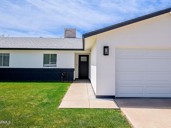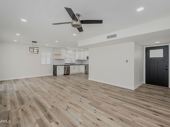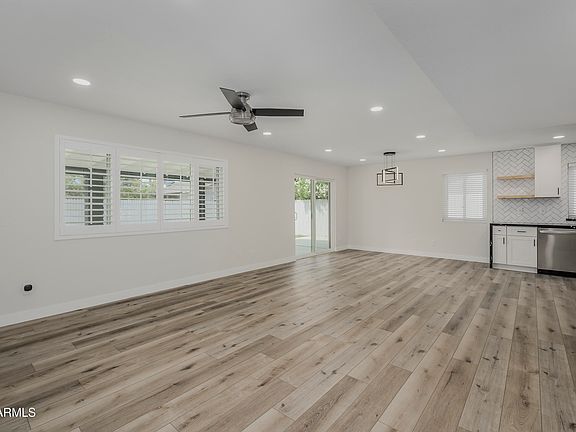 Situated just 1 mile south of the vibrant Westgate Sports and Entertainment District and the $1B VAI Resort, this newly renovated home offers luxury, comfort, and convenience in one of the fastest-growing areas of the Valley. With close proximity to Banner Estrella Medical Center and multiple MLS Spring Training facilities, it's perfectly positioned to enjoy all the excitement and opportunity this rapidly developing region has to offer. Inside, the open great room is complemented by high-end finishes and durable luxury vinyl plank flooring throughout. The chef's kitchen is a standout with intricate tile work, quartz waterfall countertops, upgraded cabinetry, floating shelves, and top-tier stainless steel appliances. The master bath features a walk-in shower with a 6-way valve (rain, handh 6-way valve (rain, handheld, and body sprays), 3/8" tempered glass, and premium fixtures. The hall bath offers a tiled bathtub surround, high-end finishes, and both baths feature spa-like backlit anti-fog LED mirrors and premium Delta fixtures. The spacious backyard includes a newly renovated mini-pebble pool, covered patio, RV gate, and plenty of parking. This home perfectly combines style, function, and location for the ultimate living experience.