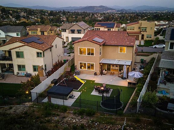 BEAUTIFULLY UPGRADED 4 BEDROOM PLUS LOFT, 3.5 BATH HOME IN THE HIGHLY SOUGHT AFTER WESTON NEIGHBORHOOD IN SANTEE. THIS STUNNING HOME FEATURES HIGH CEILINGS THROUGHOUT, LVP FLOORING, GORGEOUS KITCHEN WITH QUARTZ COUNTERS, STAINLESS APPLIANCES, WALK IN-PANTRY ALONG WITH HUGE CENTER ISLAND, LOTS OF WINDOWS, VERY LIGHT AND BRIGHT WITH MOUNTAIN VIEWS, PAID FOR SOLAR, 1ST FLOOR BEDROOM WITH FULL BATH, SPACIOUS GUEST BEDROOMS ALL WITH WALK IN CLOSETS, LARGE PRIMARY BEDROOM WITH 2 WALK IN CLOSETS, PRIMARY BATH HAS DUAL VANITY ALONG WITH SEPARATE TUB/SHOWER, AMAZING YARD WITH COVERED PATIO, BUILT IN BBQ, ARTIFICIAL TURF, SPA AND FIREPIT, LARGE OPEN SPACE AREA BEHIND THE HOME FOR MAXIMUM PRIVACY. HOA AMMENTIES INCLUDE POOL, SPA, GYM, PARK, WALKING TRAILS AND MORE.