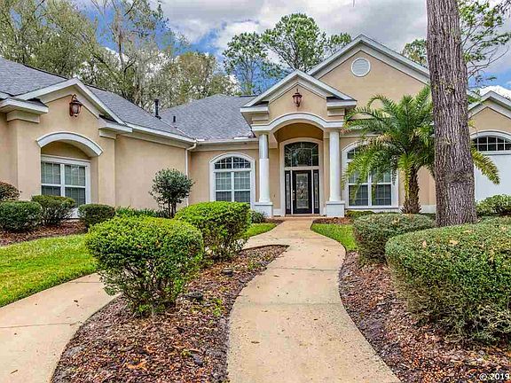 Beautiful GW Robinson custom built home located in the highly desirable neighborhood of Cobblefield/Kelburn. You'll fall in love with this stunning 5 bedroom 5 bath home with an office that is set up perfect for entertaining. Elegant open kitchen with granite, center island, and plenty of cabinet space. Spread out in this 3 way split floorplan that provides plenty of privacy for everyone. Custom built-ins in the family room, an abundance of windows for natural light, and a gas fireplace for perfect ambiance. Outside offers a 3 car side entry garage, expansive screened lanai with pool, hot tub, pavered surround, and summer kitchen. All situated on a private, fenced .68 acre lot. All minutes to North Florida Regional Hospital, Shands, and UF. A must see, you won't be disappointed!