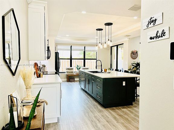 This beautiful 2-story single family home is move in ready. Located in the desirable Isle of Bayshore Community. It has 4 bedrooms, 2.5 bathrooms, and a 2 car garage. The home offers an open concept kitchen and living room area with brand new shaker cabinets and Calacata quartz countertops. The home is filled with natural sunlight through its large bay windows and sliders. Double door master bedroom with two large custom made walk-in closets and a double sink vanity in the bathroom. Samsung appliances throughout the house, brand new tankless electric Rheem water heater (2021), brand new Rheem 5-ton AC unit (2022), and brand new vinyl flooring throughout the house (2021). Community has 24 hr. security, gated front entrance, resort style pool, gym, and community center. Paved patio area