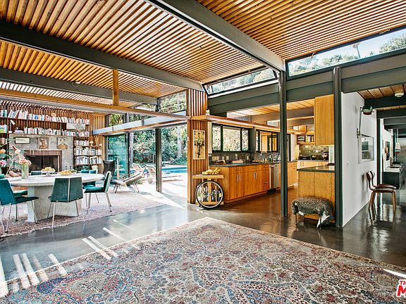 The year was 1953, Robert Thorguson was fresh out of USC Architecture school and ready to put his mark on Laurel Canyon. This mid century marvel is one of the 3 very special houses believed to have been designed and built for the architect himself. Sited on nearly an acre of private gated forest grounds, walls of glass connect the entire home to the great outdoors. The remarkable open concept living/dining/kitchen with 2 wood burning fireplaces connect a flat grassy knoll to the heavenly pool and outdoor shower. This house features 3 bedrooms and 2 bathrooms and concrete floors with radiant heat throughout. Wake up in your sexy master suite, step outside and dive into your dream life.