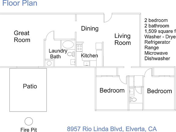 This 1509 square foot single family home has 2 bedrooms and 2.0 bathrooms. This home is located at 8957 Rio Linda Blvd, Elverta, CA 95626.