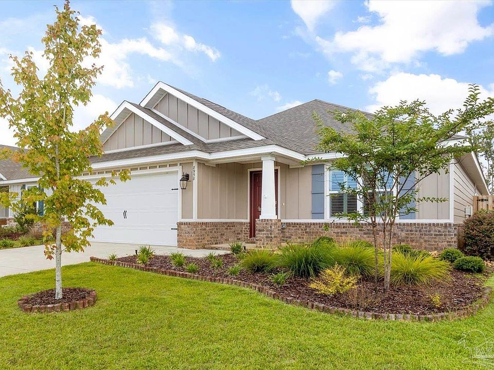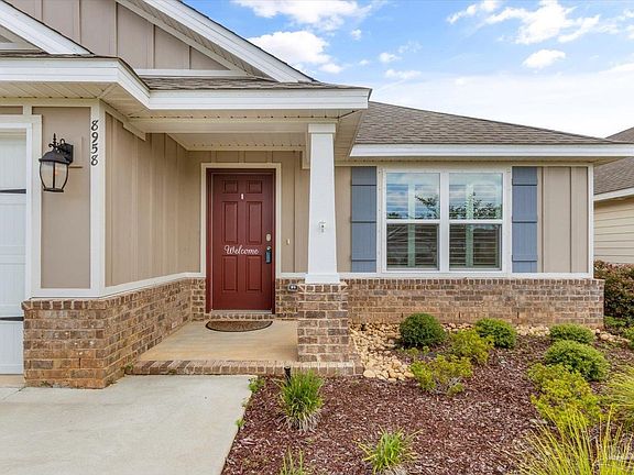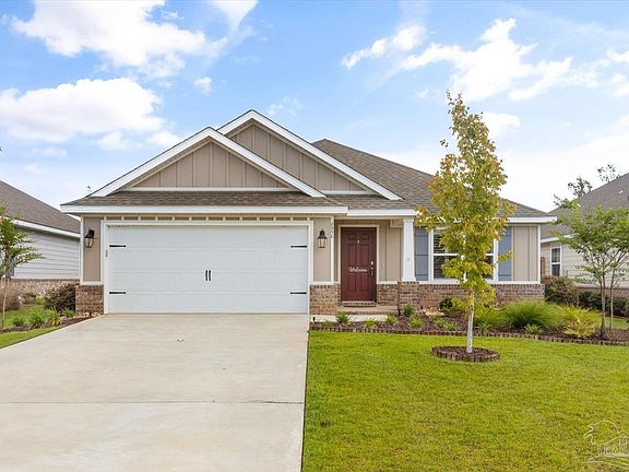 Welcome to 8958 Skip Stone! This beautiful 4 bedroom 2 bath home built in 2021 is located in the new Yellow River Ranch development just off of Highway 87. Home is convenient to Navarre & Milton. The Verbena A has an open concept living plan. The landscaped front yard & covered entryway invites you to your front door. The home has granite countertops & luxury vinyl plank flooring throughout the main living areas w/carpet only in the bedrooms. The kitchen has abundant cabinet space, granite countertops, & a single basin sink. Granite in both bathrooms. The back yard is fully fenced in, complete with covered patio. The view from the back patio shows a great playground area for the kids along with a beautiful community pool, complete with restroom/washroom. This, along with the soon-to-be tennis/basketball courts, is only a short walk out of your back gate! Yellow River Ranch has AT&T Fiber throughout. You'll love the sidewalks in this neighborhood and the many lakes throughout. If you haven't checked out Yellow River Ranch, What are you waiting for?