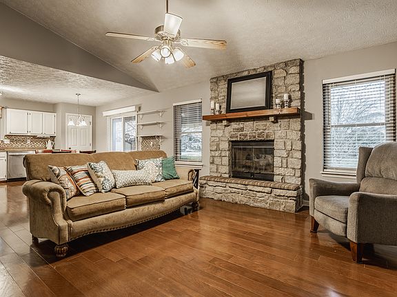 Wonderful opportunity in tranquil Sunset Lake! This ranch style home features LAKE VIEWS complete w/ large concrete patio & pergola to create the perfect outdoor oasis! The open floor plan ensures you can enjoy lake views & the cozy gas log fireplace while entertaining guests in the kitchen or living room. The 3 bed/2 bath home has been UPDATED! The home has newer flooring in the main living areas and primary bedroom, an updated kitchen w/ all new appliances in 2023, & a remodeled primary suite! The primary bath now features a large walk-in shower, updated flooring and fixtures, and a custom closet! Spacious 2 car garage and mini barn are perfect for extra storage needs like outside toys, lawn equipment, etc. Don't miss the chance to make this peaceful retreat your home!