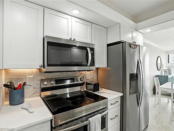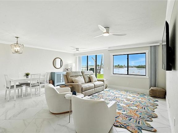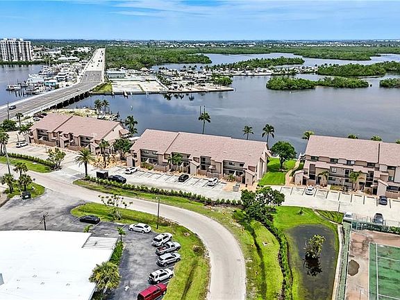 Welcome to Sportsmans Cove Yacht & Racquet Club where coastal comfort meets waterfront living. This fully furnished and tastefully remodeled 1 bedroom 1 bath condo captures the essence of island life with sparkling bay views, a private dock, and direct access to Hurricane Bay. Step inside to discover a bright open design with crown molding, marble style tile floors, and an updated kitchen featuring white shaker cabinetry, quartz countertops, and stainless steel appliances that blend elegance with everyday ease. Enjoy mornings on your private patio with outdoor storage or head out on the water straight from your dock. The community offers a heated bay front pool, tennis courts, fishing pier, boat ramp, and boat storage providing everything you need for the perfect coastal lifestyle. Ideally located on San Carlos Island you are minutes from Doc Fords, Tinas Bar, Parrot Key, Publix, and the bridge to Fort Myers Beach giving you quick access to the beach, restaurants, and island fun. Whether used as a vacation retreat, investment property, or full time home, this condo delivers turnkey convenience, coastal charm, and an unbeatable location. Your dream of living on the water starts here.