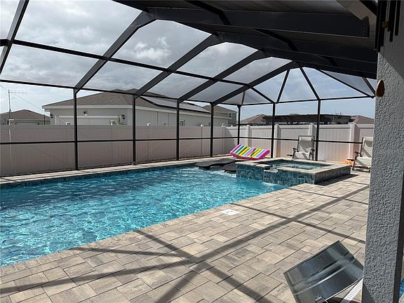 SELLER MOTIVATED!!! Welcome to this stunning corner-lot home located in the desirable community of Eagle Landings — just minutes from LEGOLAND and perfectly situated between Tampa and Orlando! This beautifully designed property offers a modern open-concept floor plan ideal for today’s lifestyle. The kitchen is fully equipped with GE stainless-steel appliances including range, dishwasher, refrigerator, washer, and dryer — all included! The spacious layout provides comfort and style with thoughtful upgrades throughout. The large corner lot offers a generous backyard, perfect for entertaining, relaxing pool side or in the hot tub which is fully screened and fenced Built with quality in mind, the home features block-on-block construction, architectural shingles, and a sleek stucco exterior for long-lasting durability and curb appeal. Inside, integrated smart home technology allows you to control home and pool — all from the palm of your hand. Plus, with easy access to major highways, commuting is a breeze. Schedule a showing today!!!