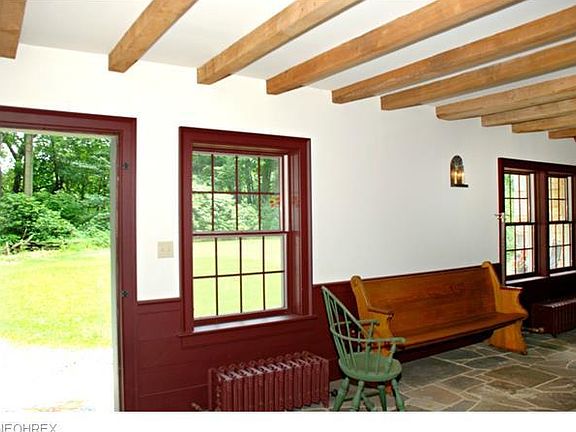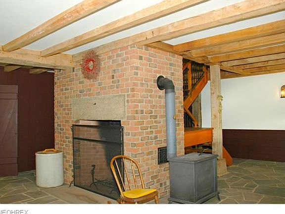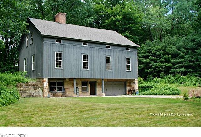 This wonderful home was originally a 19th century barn that was dismantled piece by piece and moved from it's former site in Sharon Twp. Reconstruction & refurbishing has been accomplished over more than 2 decades. The 3 level 5000 sq. ft. barn sits on 2.7 wooded acres with public water & public sewer. The original barn is believed to have predated the Civil War and was later reconstructed in 1887 as substantiated by the dated cornerstone of 1887. The authentic timber frame construction was meticulously assembled to it's original state. The walls and ceilings are sheathed in old wood from area barns and mills. Kit. counters were created from blackboards that once graced the Ravenna Ohio Schools. The floors are reclaimed brick, roofing slate and pieces of old flagstone sidewalks from the City of Ravenna. The Rumford F/PL can be viewed thru an open tread staircase on all 3 levels. The 2nd floor boasts 12 ft. ceilings & consists of a Gr. Rm. Liv. Rm. Din. Rm. spacious Kit. with slate floor and St/St appl. a Butler's Pantry, Office and 1/2 Ba. complete this level. The wood for the cabinets and stairs was milled in New Philadelphia. The 3rd floor Sauna was completed in 2013 with removable floors and seats. All of the 3rd floor Eyebrow Windows do open for fresh air and the skylights automatically close, should it rain. The Mstr. Bd Rm has a vaulted ceiling, sitting area and his & her closets. Call for a private viewing of this truly exceptional, one of a kind home.