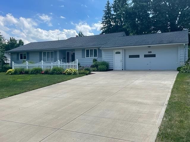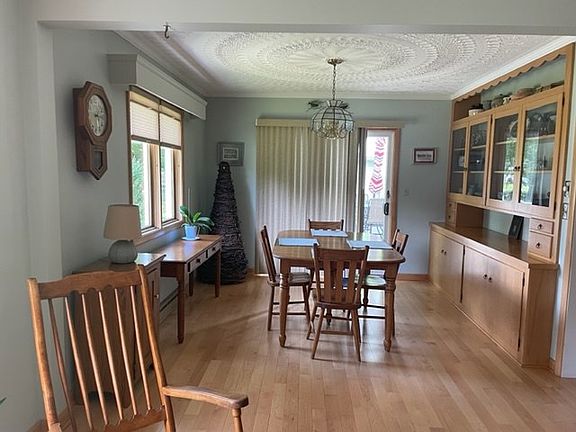 Beautiful ranch with gorgeous Maple floors throughout! Large windows across the back let in the natural light and view of the park like back yard. 1st floor laundry with new dryer. Most windows are new replacement. Bedroom has French door to 10x12 deck with hot tub. Family room has natural stone fireplace on entire wall and Nature Stone flooring. Handicap accessible. General Home inspection and American Home Shield Warranty provided by seller. Possession available September 5th. Seller will review offers Monday evening July 17th.