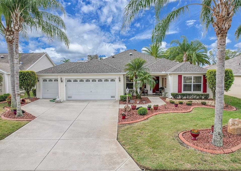 GREAT LOCATION just off of Canal Street!! BOND PAID!!! In The Village of Sabal Chase - so close to Lake Sumter Landing Market Square® at The Villages®, and to your Village POOL!!! ** Very Desired Designer Camellia Model with a GOLF CART GARAGE - 3 SOLAR TUBES - ENCLOSED Lanai/FLORIDA ROOM under Heat and Air from the *** June 2022 HVAC System!! *** NEW ROOF installed Feb 2022! Home comes TURNKEY (Optional)!!! Built-in Workstation in Golf Cart Garage, and Storage in 2-Car Garage!! Beautiful Landscaping with Curbing & Rock Mulch, Covered-Front Porch, BBQ Patio out back, High & Vaulted Ceilings, and INSIDE Laundry Room!! Owners En Suite is amazing with 2 walk-In closets, Linen Closet in Bath with Private Privy and "L" shaped Vanity with dual sinks! Breakfast Bar and Center Island in Kitchen with Under-Cabinet Lighting. Guest Wing with Bedroom 2, Guest Bath, Den/Office (could be Bedroom3/no closet) open from Foyer with Pock-door Entry. Don't miss this GEM of a Home in a SUPER LOCATION, BOND PAID, ROOF 2022, HVAC 2022!!