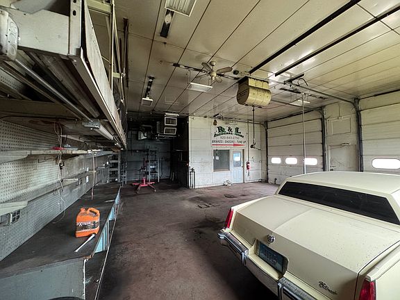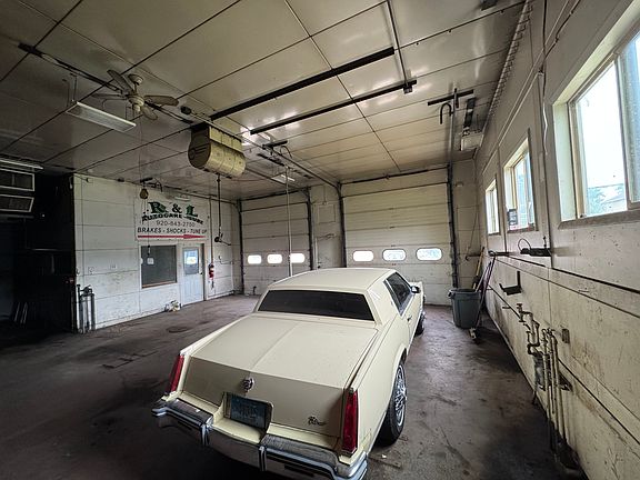 Auto shop for rent. Located on a busy corner of South Commercial Street and Cecil Street, in Neenah. Has two bays, a reception area, an office area and one bathroom. Zoned commercial.