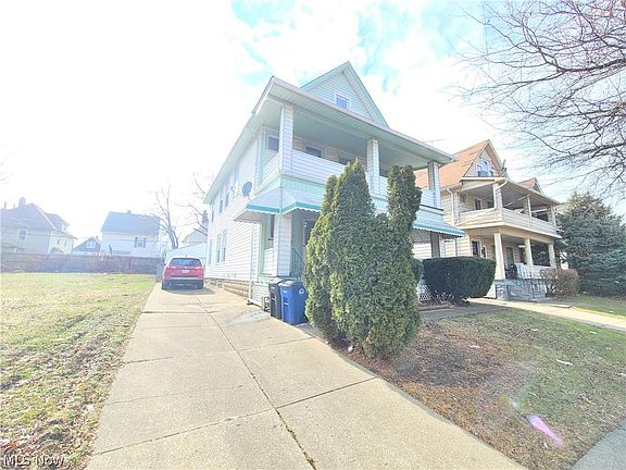 Solid Cleveland duplex with tons of upside. Each unit features 2 bed 1 bath and offers just under 1,000 sq ft. The down unit has an updated kitchen, hardwood floors, and central AC installed! Both units have covered front porches that occupants will enjoy. The basement offers storage and separate laundry hookups. Gas & electric are separately metered for each unit. The 2-car garage is less than 10 yrs old and the roof of the home was replaced in 2019. The unfinished walk-up attached is great for storage and has the potential to add 1,000 sq ft to the up unit if finished or can be built out as a third unit! This property is being sold as-is. Video walk through available. Don't miss your change to tap into the potential this classic duplex has to offer.