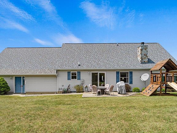 Patio Picnics and Coffee on the Porch! This lovely 3bed, 2 1/2 bath Cape Cod style home is just the ticket for you! Located just minutes from town, this home is sitting pretty on a hill and has great country views. Roomy living room opens to the large country kitchen, dining area and cozy family room with stone wood burning fireplace. Off of the kitchen is a separate laundry room with space for cubbies. All appliances are included. Main floor owners suite with dual vanity, jetted tub, separate shower and lots of closet space. A half bath is located just off of the family room. An open staircase in the living room leads to the upstairs where there are two spacious bedrooms, a loft area and another bath. The oversized two car garage is actually three-car wide and deep enough for a workshop or other storage options. A staircase leading up to the garage attic could be finished into a bonus room. Home sits on a large unfinished basement, with lots of opportunity to make the rec room of your dreams. Geo Thermal Heating and Cooling are just one of the many updates. Come see for yourself and you will want to move here!