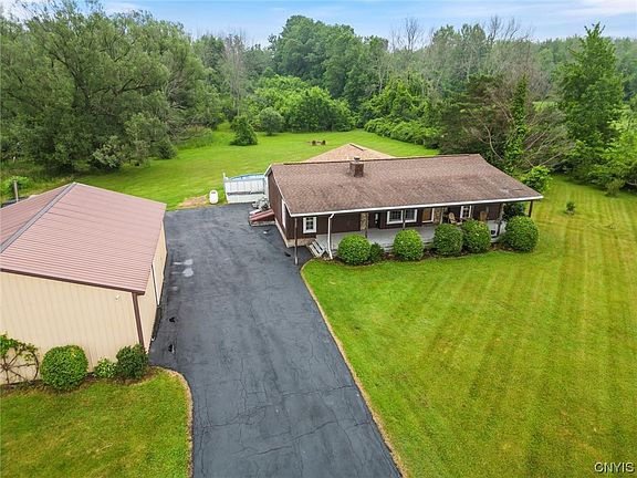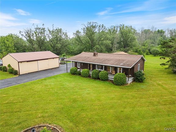 Welcome to your country oasis in Clay NY. With 3 bedrooms and 2 bathrooms plus finished bonus space in the basement this ranch home offers stunning sunset views from the spacious front porch. A pool for summer fun and sits on nearly 3 acres of land with an adjacent 3 acre parcel behind the house also for sale with this home ( listing S1481275) Property includes a large pole barn that once housed horses and has endless options for use! Bring your ATV's explore the manicured trails or watch wildlife from the spacious back room. Also within minutes to shopping restaurants and the Oneida River public boat ramp in Clay.