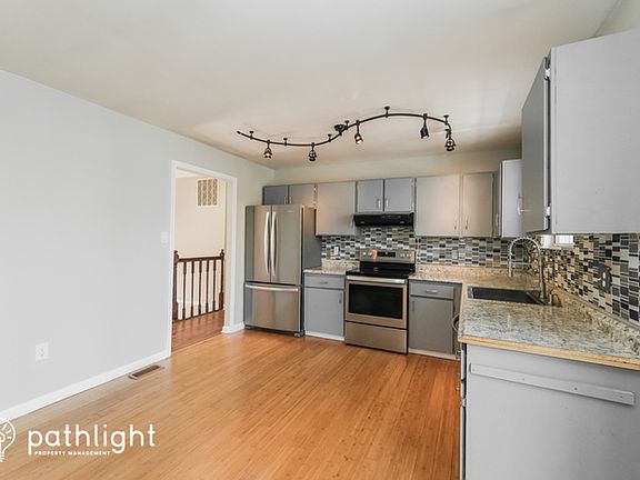 4 Bedroom, 2.5 Bath Split Foyer on a full Basement. Small deck off Kitchen overlooking trees, multi-tiered deck in back yard, Storage shed, wood stove in basement. Located on cul de sac of a quiet neighborhood. Close to Dunkirk, Ches/North Beaches, easy access to Rt 4 and DC metro areas.