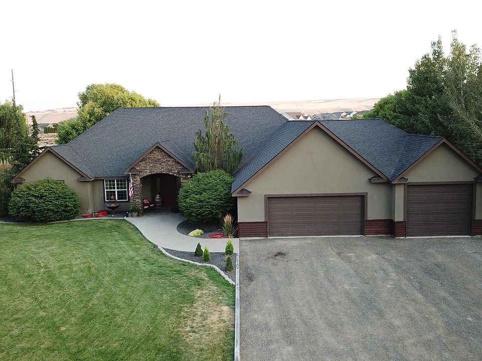 MLS# 286324 Custom-Built One-Owner Home on 2.5 Acres with Massive Finished GarageWelcome to this beautifully crafted, one-owner custom home offering 3,061 sq ft of thoughtfully designed living space. Situated on 2.5 acres with full irrigation rights, this property perfectly blends comfort, function, and wide-open space — with room for you, your animals, and all your toys.Step inside through a handcrafted front door from Montana and be greeted by striking Black Alder beams and a spacious open floor plan. The home features 4 bedrooms plus a den, and 3 full bathrooms — ideal for families or those who love to entertain.The expansive primary suite includes a coffered ceiling, two walk-in closets, a luxurious jetted tub, and a large walk-in tile shower. Every detail was considered for comfort and style.Outside, enjoy the huge covered patio — perfect for relaxing and taking in the peaceful surroundings. The 1,819 sq ft finished garage can be heated and cooled, offering endless space for vehicles, Boats, Gym, or a workshop. There's also ample parking for recreational vehicles and more.This is more than a home — it’s a lifestyle. Room to roam, custom features throughout, and a setting you’ll never want to leave. Wired for surround sound in Master bed, Main Living, Garage, and Patio!