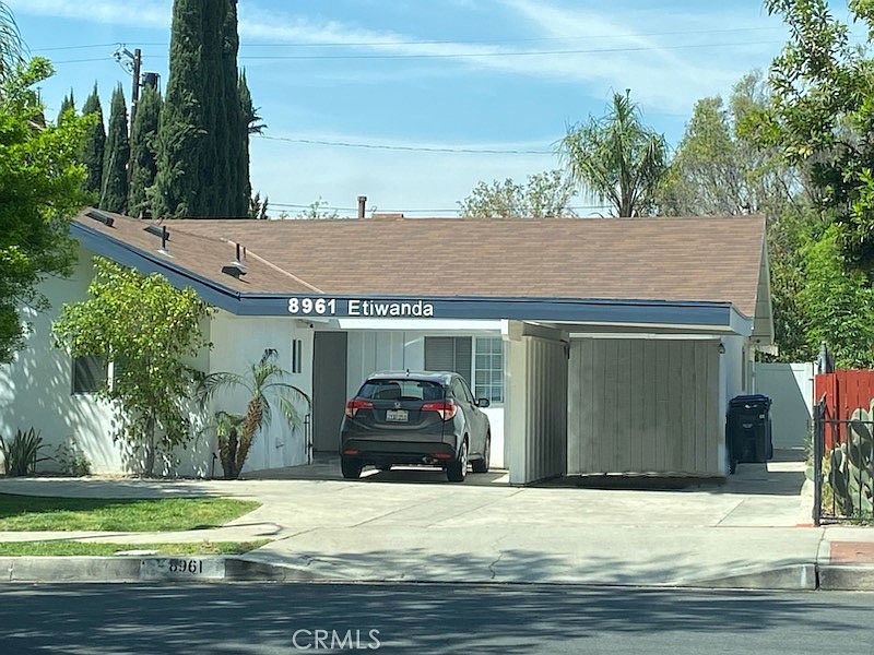 Great Northridge location 3 + 2 house with about 1500 sqft and 6909 sqft lot. Solar panels paid for. Open floor plan with High Ceilings & Crown Molding in Living Room. 5 burner gas cooktop, Double Oven, Dishwasher, microwave, Washer and Dryer. Laminate Flooring through out. Nice Backyard & 2 Covered Car Carport, bonus storage room in the back. NO garage, converted to a legal Studio ADU approximately 400 sqft- separate address 8959 Etiwanda. Fully Equipped with Stainless Steel Refrigerator, Range, Dishwasher, Stackable Washer and Dryer. Mini Split AC/Heating unit with Remote Control. Convenient location by CSUN, near Transportation, Shopping and Restaurants. Restricted Street parking, Require Permits. Appointment Required (24 hrs notice)