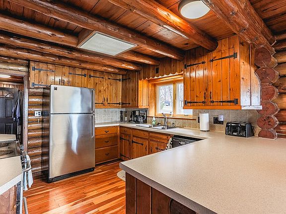 Devils Lake lakefront offering! Incredible setting on the fabulous Cherry Point! 95-feet & almost 1/2 acre! Sandy beach. Amazing stone patio & hardscapes. Charming log home totally updated & remodeled. Cathedral ceilings. Stone fireplace. Cherry hardwood floors. Featuring main floor bedroom, laundry, 2 full baths. Upstairs offers 4 additional bedrooms with walk-in closets & 3rd full bath. New roof, windows, siding, gutters, & soffits. New plumbing, hot water system, water softener, in-ground sprinkler system, dock system, out door patio fireplace & Jenn-Aire grill! New, deep well. Plus boathouse. Garage totally updated including new underground electric service & exterior lighting. New garage doors w/openers & hi-intensity Badass brand LED lighting & pellet stove & plasma TV.