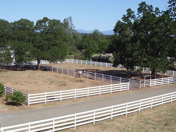 Perfect horse property at end of private paved road. The property consists of 5.12 level acres. The Main home is 2,391 sq ft 4 bed 3 bath PLUS a detached 675 sq ft In-Law suite renting for $700. Home features, Hardwood floors throughout, mahogany cabinets, corian countertops, 2 master bedrooms w/full baths, large laundry room, dual pane windows, open floor plan, Click More ->