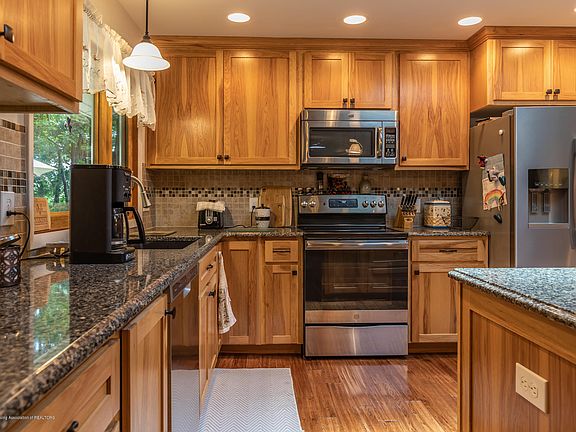 Sprawling 2,731sf ranch nestled in the middle of 3.3 wooded acres just outside of Portland City Limits. This 4 bed/3 full bath home has plenty to offer including a new custom kitchen. The master bedroom has a walk-in closet and a slider door to the back yard. The 4 season room lets you fully enjoy the secluded backyard. Other features include solar tube lights, a skylight, dual heating system, a fireplace and to top it all off a 22x36 pole barn. This location and setting are rarely found in this area, schedule your showing today.