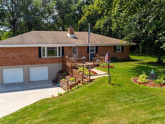 Opportunity knocks! This fantastic all brick Ranch, situated on a gorgeous .78 acre lot, zoned AG in Roscoe, feels private and secluded yet is minutes from all Roscoe amenities. Nestled among the trees and surrounded by woods, watching the turn of the Seasons and abundant wildlife will be a delight from either your front deck or rear patio or from the abundance of windows in the home. Upon entering you are greeted with a large Living Room with a cozy wood burning fireplace which is open to a formal Dining Room, both with gleaming hardwood floors and perfect for gatherings. The well-appointed Kitchen has been updated and offers generous cabinet and counter space, tile backsplash, pantry, stainless appliances and conveniently leads to the rear patio for those summer cookouts. There are 4 spacious bedrooms on the main floor as well as 2 full baths that have been nicely updated. Your living space doesn’t end here: The basement has been substantially finished to include a Family Room with a second fireplace and a Flex space that can be utilized in a multitude of ways giving you a grand total of over 2,700 square feet of quality living space. With both an attached 2 car garage and a detached 2.5 car garage there is ample storage for all of your needs. The whole property has been lovingly maintained and is move-in ready and the icing on the cake? Hononegah Schools! This gem is not to be missed.