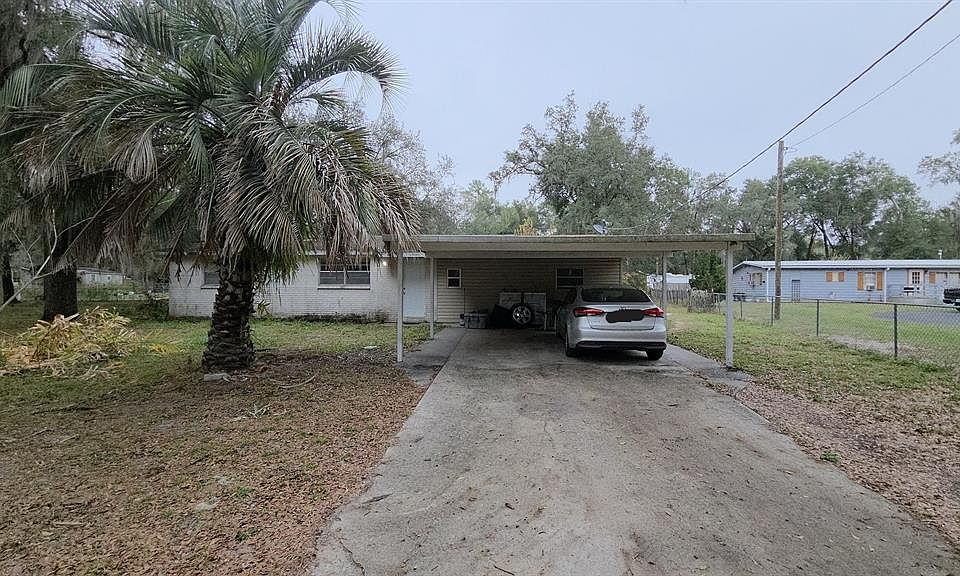 Discover the perfect blend of comfort, space, and potential in this charming 3-bedroom, 1-bath concrete block home tucked away in the peaceful Holiday Shores community just west of Bushnell. Sitting on a sprawling ¾-acre lot, this property offers room to breathe, play, and grow—surrounded by beautiful mature trees and lush landscaping that create a true sense of privacy. Step inside and you’ll find an inviting layout, including an oversized primary bedroom with a huge walk-in closet that offers the exciting possibility of being converted into a second bathroom while still allowing space for a new closet. The home also features an attached carport, a screened back porch perfect for relaxing year-round, and a fully fenced yard with a dedicated pet area—ideal for animal lovers or anyone who enjoys the outdoors. Located on a paved county road with the tranquility of country living yet minutes from conveniences, this property is full of opportunity and ready for its next chapter. Whether you're a first-time buyer, downsizing, or looking for a peaceful retreat, this home is a must-see!