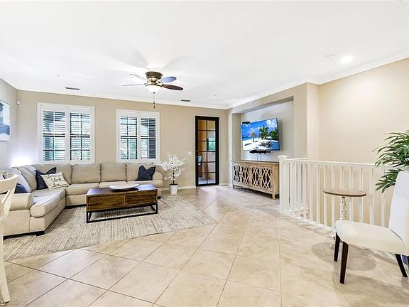 OPEN and AIRY this three bedroom, two bath FURNISHED residence with generous TWO CAR GARAGE has been beautifully maintained. The San Pablo floor plan offers highly sought after SPLIT FLOOR PLAN with spacious PRIVATE outdoor BALCONY. The kitchen boasts of BREAKFAST BAR, raised panel SOFT CLOSE CABINITRY with granite counter tops, IMPORTED ITALIAN subway tile back splash, stainless steel appliances, OVER AND UNDER lighting. Step into the LARGE MASTER SUITE with door to BALCONY master bath boasts of dual sinks, separate LOUNGING TUB and walk in shower with glass FRAME LESS door and extra large walk in closet. Upgrades include HARDWOOD stairs, crown molding, wood shelving in all closets, security system and PLANTATION SHUTTERS throughout. OLE” is an amazing RESORT SYTLE, dog friendly, community with LARGE POOL offering POOLSIDE SERVICE, individual cabanas, SPA, kiddie pool, PICKLEBALL, volleyball court, tennis courts, BASKETBALL COURTS, private movie theater, pub and restaurant, state of the art FINESS CENTER and library.. Excellent location centrally located close to Marco Island and Naples beaches, 5th Ave and restaurants and shops. Peace of mind with New Roof 2024, New Rheem A/C 2019, New Water Heater 2023, New Washer and Dryer 2020. THIS IS A MUST SEE!!!