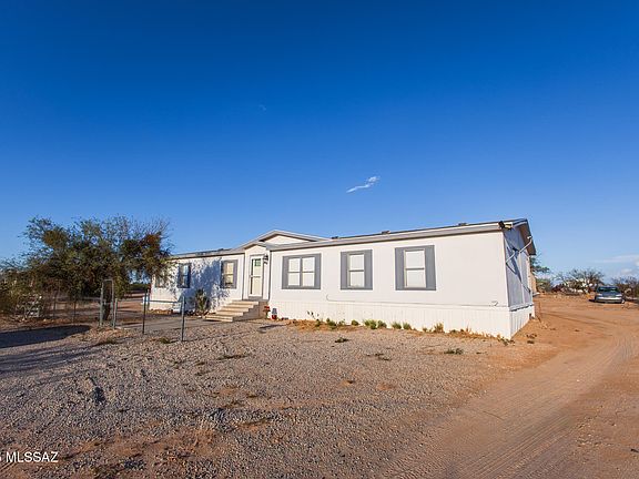 Beautiful 3 bed, 2.5 bath manufactured home on a full 1-acre lot in Three Points! Offering 2,128 sq. ft., this spacious split floor plan features a large open living area, oversized bedrooms with walk-in closets, and plenty of natural light. Take in breathtaking desert sunsets from the front yard and enjoy serene mountain views year-round. Built in 2000, this property has no HOA and is connected to city water, with plenty of space for horses, RV parking, and outdoor toys. Conveniently located just off Ajo Way with easy access to Tucson, this home blends peaceful country living with everyday convenience.