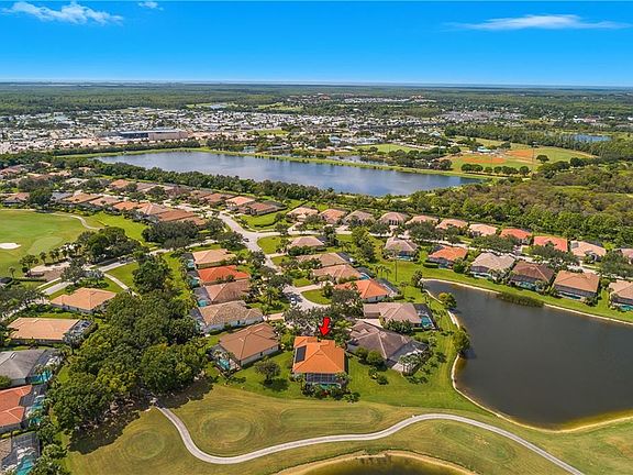 Outstanding lake view from this home located at the end of a cul-de-sac. Fabulous privacy with this 2 bedroom plus a den home. Foyer leads to large living room (great room) with marble framed fireplace and elegant dining room. Kitchen has stainless appliances, highly upgraded cabinets and quartz counters. Elegant master bedroom with walk-in closet and a custom designed ladies make-up area. Master bath has updated shower and dual sinks. Both master bed and bath have new hurricane windows installed in 2024. Split bedrooms allow for privacy in the guest bedroom and bath. Lovely pool has panoramic screen done in 2022. Lanai has hurricane screens put in by Storm Smart 2023. Pool is heated by solar and electric. High end AC replaced in 2025. New roof 2022. Two car garage with new spring board. Mustang Island is a gated community for homeowner security. The Players Club and Spa resort style amenities are included with this home. The Club offers three pools, tennis, pickle ball, bocce, spa, a complete fitness center, and a full social calendar. Lely Resort offers the perfect balance of leisure and recreation.