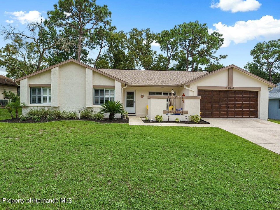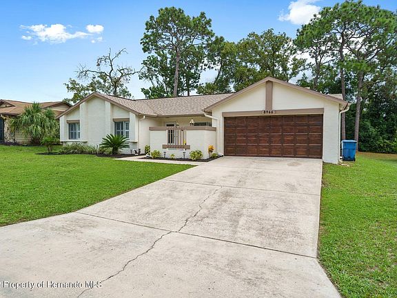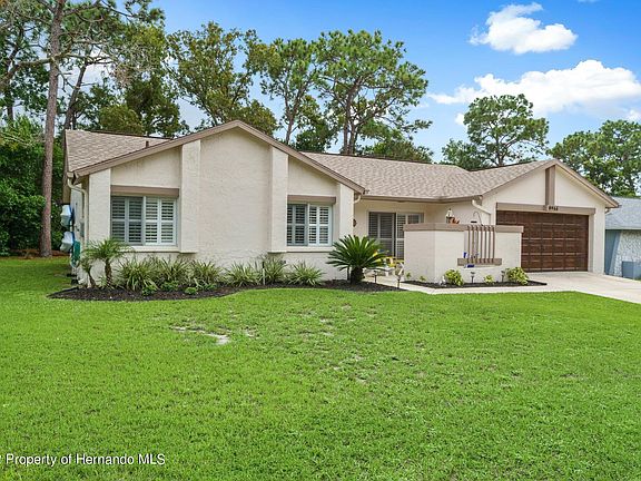 SENSATIONAL 1450 SQFT, 3BR/2BA/2-CAR GARAGE HOME, BUILT IN 1983, AND LOCATED IN THE HEATHER. Minutes away from Weeki Wachee Springs State Park and tons of local shopping, restaurants and other amenities, yet quietly tucked away in this lush community where you can enjoy it's beautiful tranquility. From the moment you pull up to the house, you're invited into a cozy front porch/patio from which entering through the front door, you find yourself in a modern looking formal living room with high vaulted ceilings, leading you into the formal dining room with sliding glass doors outside. The spacious eat-in kitchen features lots of cabinets and counter space as well as more sliders to a small back patio perfect for those evening grill nights under the stars, but also an entrance into a indoor laundry room with tons of pantry shelves before entering into your huge garage. The roomy bedrooms have lots of natural light, tons of closet space and you'll have plenty of room to get ready in the main bathroom off the hall. The master bedroom features a walk-in closet and it's own spacious bathroom with enormous walk-in shower with beautiful tile work and glass door as well as a sitting area perfect for long hot relaxing spa treatments after a long day. THIS ONE TRULY SHOULD NOT BE MISSED.... JUMP ON IT TODAY! CALL NOW TO SCHEDULE YOUR SHOWING... AND MAKE AN OFFER TODAY!
