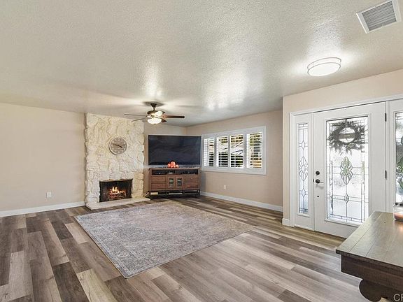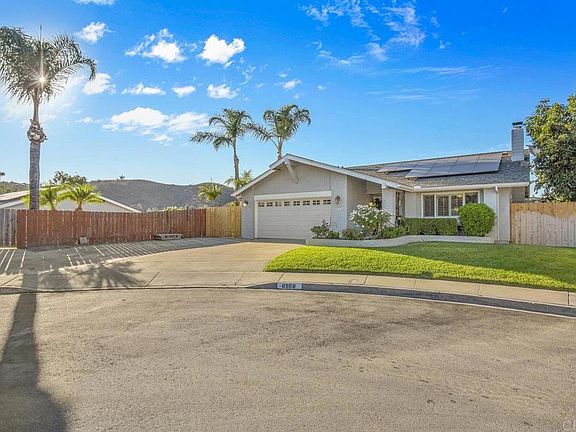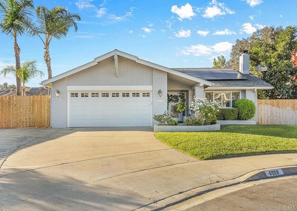Range price $935,000 to $975,000. Welcome to 8968 Ridgeton Lane, a beautifully upgraded single-story home in Lakeside, CA, perfectly situated on a quiet cul-de-sac with spectacular west-facing views for incredible sunsets. This entertainer’s dream offers a recently remodeled kitchen featuring white cabinetry, quartz countertops, new appliances, and luxury vinyl plank flooring, shutters on every window, alongside updated bathrooms with walk-in showers. The backyard is a private oasis with a sparkling pool, spa, large seating area, and grassy space, plus solar that’s fully paid and RV parking. Mature lemon and avocado trees add to the charm of this spacious home, complete with separate living, dining, and family rooms. Ready for anyone who loves to entertain, this home invites relaxation and joy!