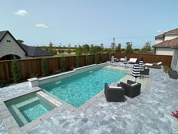 Breathtaking custom Highland home in The Grove has it all with designer touches and upgrades throughout! Upon entrance you are greeted with a grand foyer complete with exquisite staircase and sliding barn doors to an executive suite. Expanded formal dining comfortably fits an oversized table. Open concept kitchen and living overlook the backyard oasis featuring sliding Pella door that leads to covered patio with outdoor bathroom and storage, heated pool and spa with low maintenance yard. Oversized owner's retreat with large ensuite and stately closet with direct access to laundry room. Guest bedroom with full ensuite on the main level. On the second level, you'll find a large playroom and built in desks that bring functionality to the space. Three additional rooms, all with ensuites, a large media room and plethora of storage make the upper living impressive. Solid core doors, upgraded elegant lighting and window treatments throughout. Quick access to toll rd, restaurants and retail.
