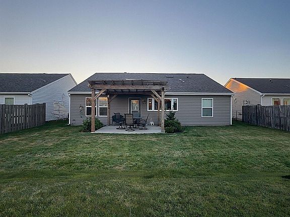 Beautiful, well maintained 4 bedroom, 2 bath ranch featuring 1,694 square feet in Hawthorne Lakes community. Home features an open concept and split bedroom design, cathedral ceiling, vinyl plank flooring in living areas, water softener, and large rear patio with pergola for outdoor relaxation and entertaining. The eat-in kitchen and dining room features a breakfast bar and additional seating options, stainless steel appliances, custom cabinetry, and a pantry. Spacious primary bedroom includes a large walk-in closet, dual vanity, soaking tub, and walk-in shower. Washer and dryer is included! Home is conveniently located close to Wyandotte Elementary School, public library, hospitals, dining, shopping, downtown Lafayette, and Purdue University.